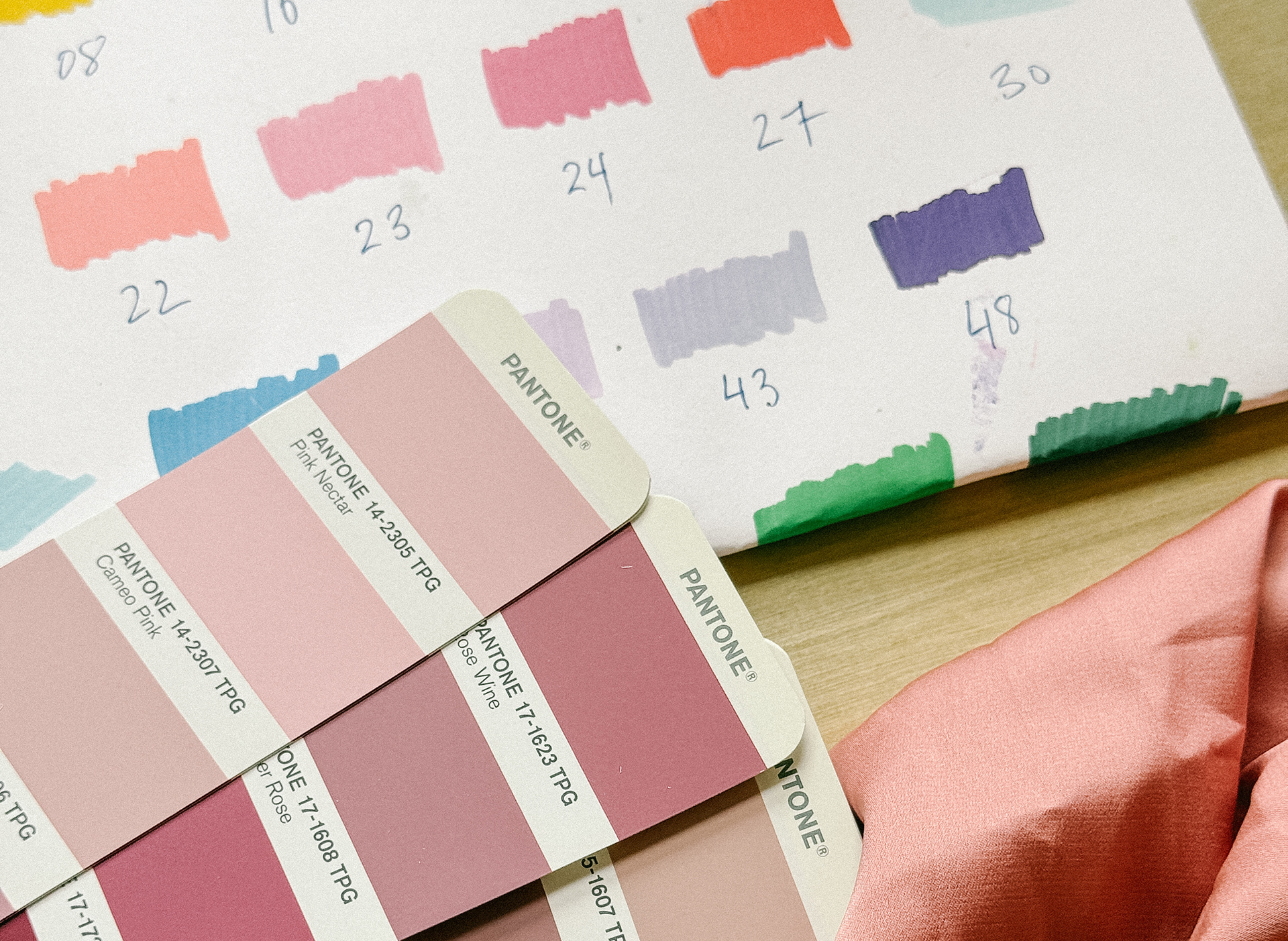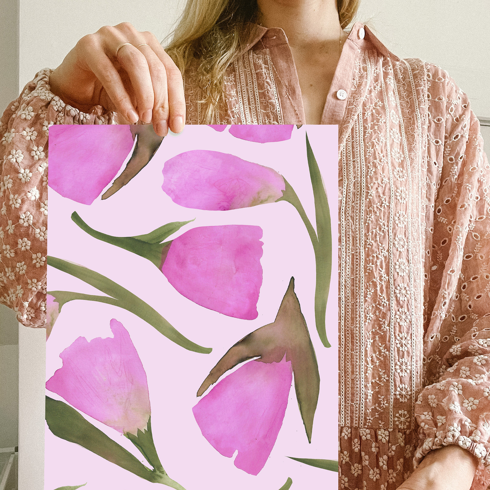 Each print goes through multiple stages: experimentation with scale and repeat, color adjustments to ensure harmony, and technical refinements so it translates beautifully onto the product.